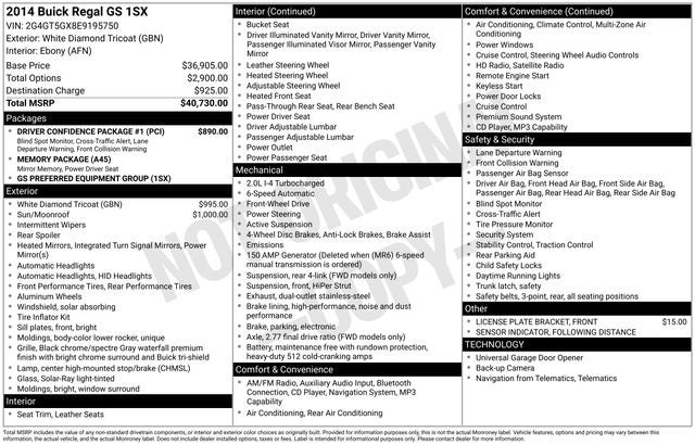 Whether you're commuting to the office or embarking on a weekend getaway, this 2014 Buick Regal GS is the perfect companion. With its blend of performance, technology, and premium amenities, it's a true standout in the midsize sedan segment.