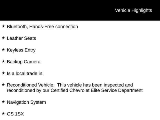 - Reconditioned Vehicle: This vehicle has been inspected and reconditioned by our Certified Chevrolet Elite Service Department