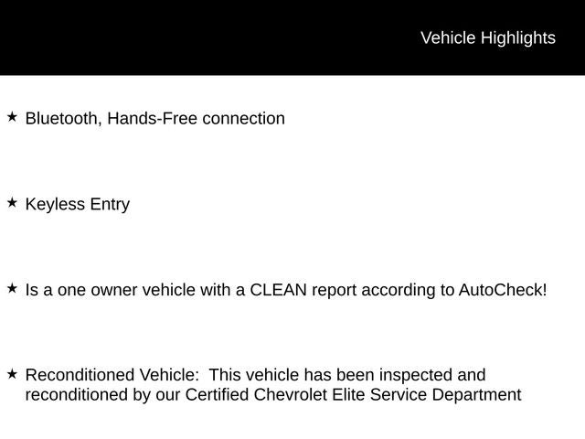 - Reconditioned Vehicle: This vehicle has been inspected and reconditioned by our Certified Chevrolet Elite Service Department