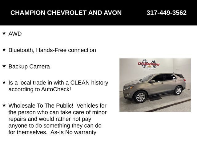 This Equinox is the perfect blend of style, capability, and technology, offering an unbeatable value for the discerning buyer. Don't miss this opportunity to own a well-cared-for, feature-rich Chevrolet Equinox at a wholesale price.