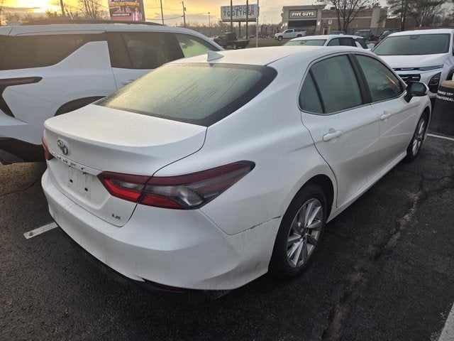 **ONE OWNER**, **GREAT VEHICLE HISTORY REPORT**, **Bluetooth®**, **REARVIEW CAMERA**.2023 Toyota Camry LE Ice Cap FWD 8-Speed Automatic 4D Sedan 2.5L I4 DOHC 16VOdometer is 9702 miles below market average!LARGEST VOLUME DEALER IN THE WABASH VALLEY!! HOME OF THE LIFETIME POWERTRAIN WARRANTY!!Price does not include applicable Tax, Title, Destination Fee, License, Processing and $249 Dealer Documentation fee, finance charges, emissions testing charges, or other fees required by law. 4-Wheel Disc Brakes, 6 Speakers, 7.5J x 17 Alloy Wheels, ABS brakes, Air Conditioning, Alloy wheels, AM/FM radio: SiriusXM, Apple CarPlay/Android Auto, Auto High-beam Headlights, Automatic temperature control, Brake assist, Bumpers: body-color, Delay-off headlights, Driver door bin, Driver vanity mirror, Dual front impact airbags, Dual front side impact airbags, Electronic Stability Control, Emergency communication system: Safety Connect (1-year trial), Exterior Parking Camera Rear, Fabric Seat Trim, Four wheel independent suspension, Front anti-roll bar, Front Bucket Seats, Front Center Armrest, Front dual zone A/C, Front reading lights, Fully automatic headlights, Illuminated entry, Knee airbag, Low tire pressure warning, Occupant sensing airbag, Outside temperature display, Overhead airbag, Overhead console, Panic alarm, Passenger door bin, Passenger vanity mirror, Power door mirrors, Power driver seat, Power steering, Power windows, Radio data system, Radio: Audio, Rear anti-roll bar, Rear seat center armrest, Rear side impact airbag, Rear window defroster, Remote keyless entry, Security system, Speed control, Speed-sensing steering, Split folding rear seat, Steering wheel mounted audio controls, Tachometer, Telescoping steering wheel, Tilt steering wheel, Traction control, Trip computer, and Variably intermittent wipers.