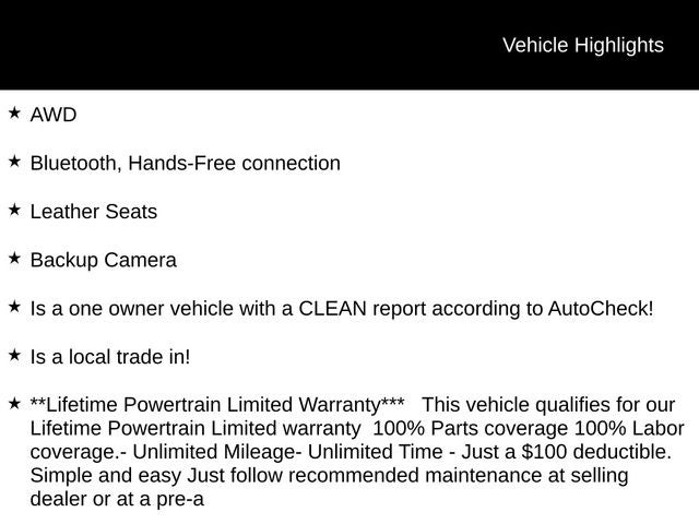 - **Lifetime Powertrain Limited Warranty*** This vehicle qualifies for our Lifetime Powertrain Limited warranty 100% Parts coverage 100% Labor coverage.- Unlimited Mileage- Unlimited Time - Just a $100 deductible. Simple and easy Just follow recommended maintenance at selling dealer or at a pre-a