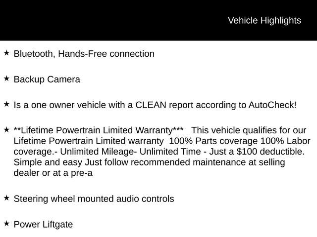 - **Lifetime Powertrain Limited Warranty*** This vehicle qualifies for our Lifetime Powertrain Limited warranty 100% Parts coverage 100% Labor coverage.- Unlimited Mileage- Unlimited Time - Just a $100 deductible. Simple and easy Just follow recommended maintenance at selling dealer or at a pre-a