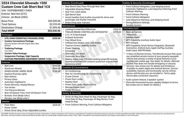 - Custom Convenience Package includes (BTV) Remote Start with (UTJ) content theft alarm, (C49) rear-window defogger, (UF2) bed LED cargo area lighting and (QT5) EZ Lift power lock and release tailgate (Included and only available with (PDX) Custom Value Package.)