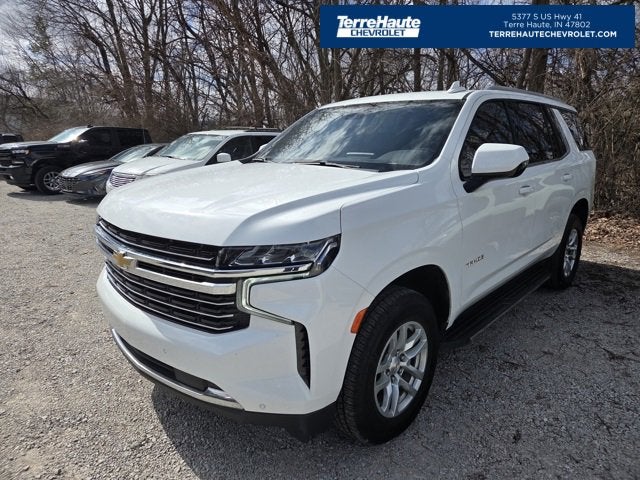 **ONE OWNER**, **GREAT VEHICLE HISTORY REPORT**, **Bluetooth®**, **REARVIEW CAMERA**, **HEATED SEATS**, **BOSE PREMIUM SOUND**, **4WD**, **RUNNING BOARDS**, **REMOTE START**, **LEATHER SEATS**.2024 Chevrolet Tahoe LT Summit White 4WD 10-Speed Automatic with Overdrive 4D Sport Utility EcoTec3 5.3L V8LARGEST VOLUME DEALER IN THE WABASH VALLEY!! HOME OF THE LIFETIME POWERTRAIN WARRANTY!!Price does not include applicable Tax, Title, Destination Fee, License, Processing and $249 Dealer Documentation fee, finance charges, emissions testing charges, or other fees required by law. Preferred Equipment Group 1LT (1st & 2nd Row Color-Keyed Carpeted Floor Mats, Auto-Dimming Inside Rear-View Mirror, Bose 9-Speaker Stereo Audio System Feature, Bright Front & Rear Door Sill Plates, Color-Keyed Carpeting Floor Covering, Driver & Front Outboard Passenger Airbags, Enhanced Driver Information Center, Floor Console w/Storage Area, Hands-Free Rear Power Programmable Liftgate, LED Daytime Running Lamps, Memory Settings for Driver, Remote Start, SiriusXM w/360L, Universal Home Remote, Wireless Charging, and Wrapped Steering Wheel), 10-Way Power Driver & Passenger Seat Adjusters, 2nd Row Manual Bucket Seats, 3.23 Rear Axle Ratio, 3rd row seats: split-bench, 4-Wheel Disc Brakes, 9 Speakers, ABS brakes, Air Conditioning, Alloy wheels, AM/FM radio: SiriusXM with 360L, Apple CarPlay/Android Auto, Auto High-beam Headlights, Auto-dimming Rear-View mirror, Automatic temperature control, Brake assist, Bumpers: body-color, Compass, Delay-off headlights, Deleted 3 Years of OnStar Remote Access, Driver door bin, Driver vanity mirror, Dual front impact airbags, Dual front side impact airbags, Electronic Stability Control, Emergency communication system: OnStar and Chevrolet connected services capable, Four wheel independent suspension, Front anti-roll bar, Front Bucket Seats, Front Center Armrest, Front dual zone A/C, Front High-Back Reclining Bucket Seats, Front reading lights, Fully automatic headlights, Garage door transmitter, Heated door mirrors, Heated Driver & Front Passenger Seats, Heated front seats, Illuminated entry, Infotainment Display, Leather-Appointed Seat Trim, Low tire pressure warning, Memory seat, Navigation System, Occupant sensing airbag, Outside temperature display, Overhead airbag, Overhead console, Panic alarm, Passenger door bin, Passenger vanity mirror, Power door mirrors, Power driver seat, Power Liftgate, Power passenger seat, Power steering, Power windows, Premium audio system: Chevrolet Infotainment 3 Premium, Premium Smooth Ride Suspension, Radio: Chevrolet Infotainment 3 Premium System, Rain sensing wipers, Rear air conditioning, Rear anti-roll bar, Rear reading lights, Rear seat center armrest, Rear window defroster, Rear window wiper, Remote keyless entry, Roof rack: xxxxxx, Security system, Speed control, Speed-sensing steering, Split folding rear seat, Spoiler, Steering wheel mounted audio controls, Tachometer, Telescoping steering wheel, Tilt steering wheel, Traction control, Trip computer, Variably intermittent wipers, Voltmeter, and Wheels: 18 x 8.5 Bright Silver Painted Aluminum.