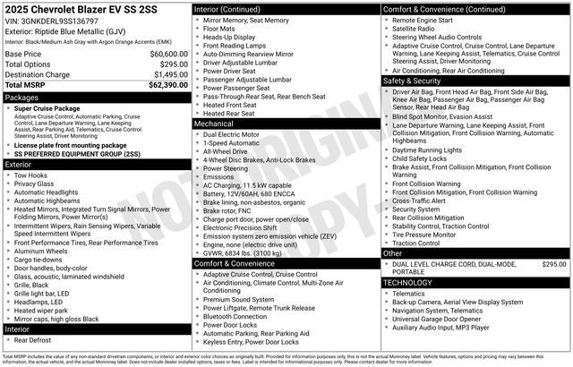 Boasting an impressive array of features, the Blazer EV SS is tailored to exceed your expectations. Key highlights include: