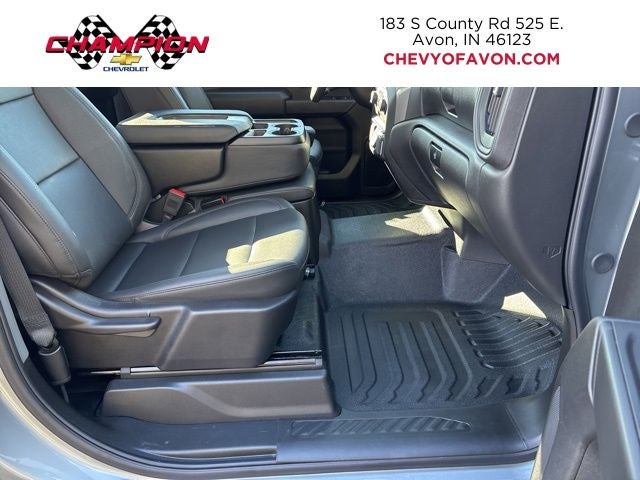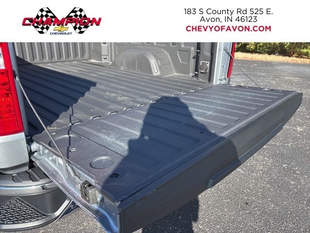 This Silverado also boasts the Dark Essentials Package, which includes sleek black accents like the Silverado nameplates, bowtie, and tailgate lettering, complemented by the Black Work Step for easy access. The Chevytec spray-on bedliner ensures your cargo area stays protected.